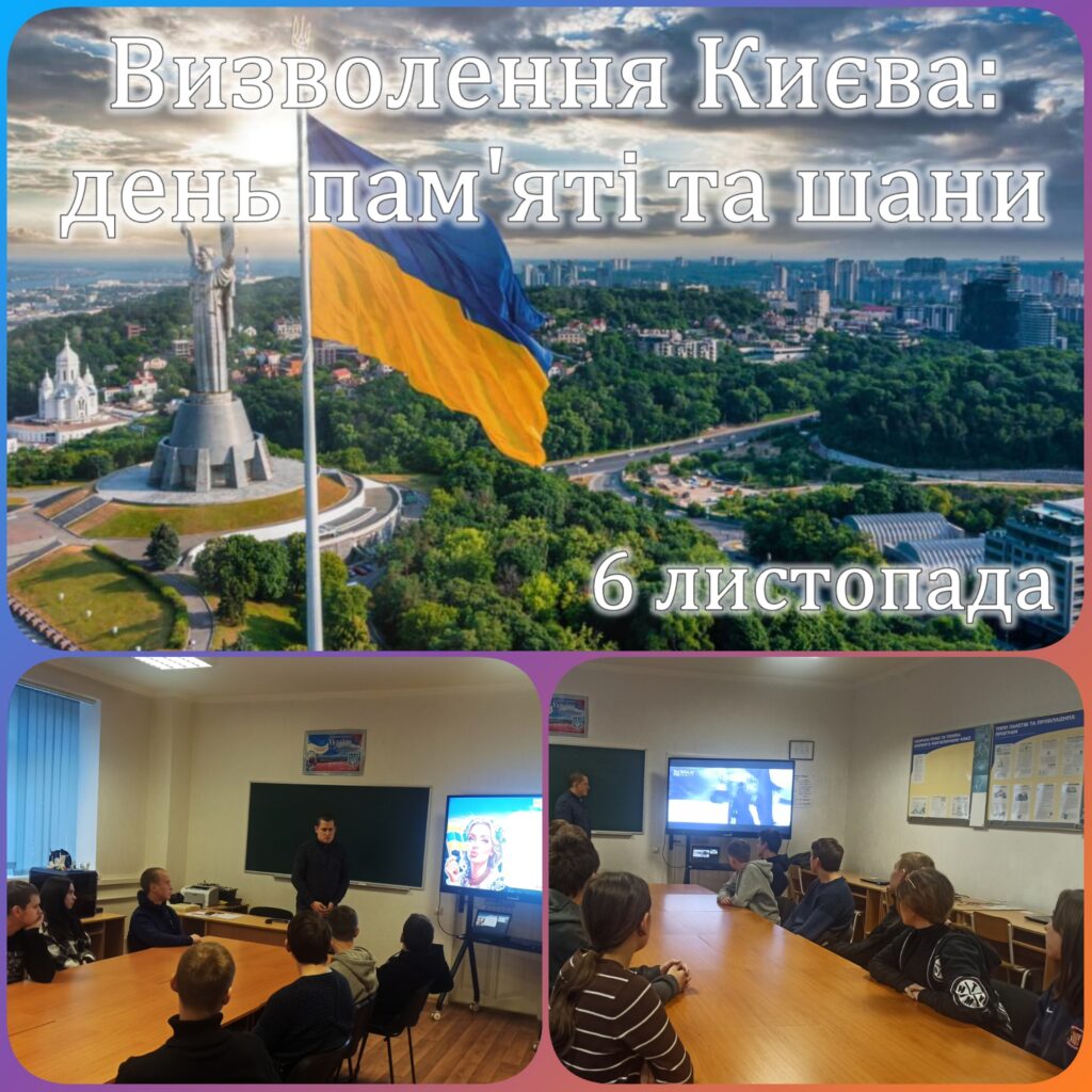 06 листопада 2024 року в Комунальному закладі професійної (професійно-технічної) освіти “Київський професійний коледж будівництва і комунального господарства” проходила виховна година “Визволення Києва: день пам’яті та шани”, яку підготував та провів викладач Фарилюк Олександр Васильович.