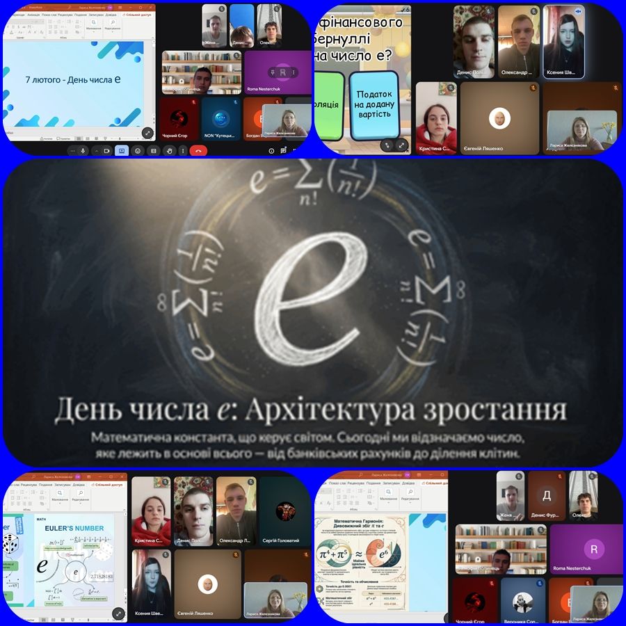 В Комунальному закладі професійної (професійно-технічної) освіти “Київський професійний коледж будівництва і комунального господарства” викладачем математики Желєзняковою Ларисою Іванівноюдля студентів другого курсу проведено інформаційні 15-ти хвилинки “7 Лютого – день числа е”.