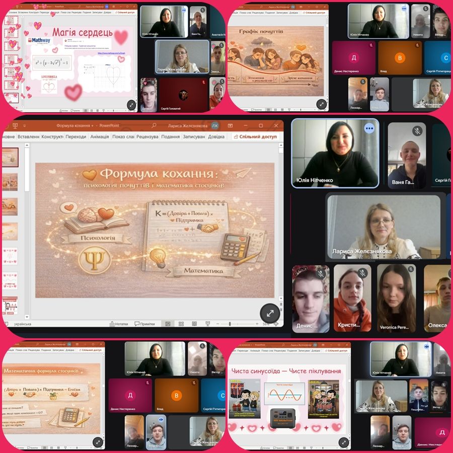 Під час заходу студенти досліджували кохання через призму психології та математики, де любов постала як складна функціональна залежність, а не хаотичне почуття. Учасники обговорили фундаментальні складові здорових стосунків, навчилися розрізняти справжню близькість і деструктивну залежність, а також усвідомили значення довіри, поваги та відповідальності як ключових аргументів у рівнянні щастя. Використання образу “чистої синусоїди” наочно пояснило важливість стабільного піклування, яке живить енергосистему пари без зайвих емоційних “шумів”.