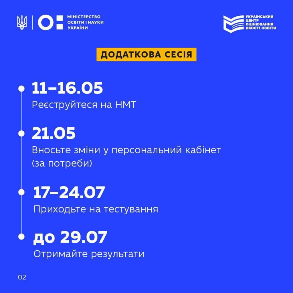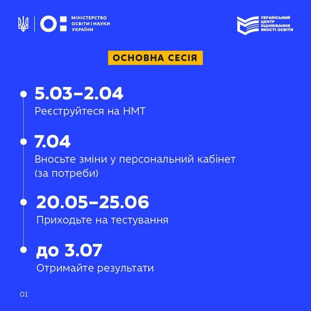 Графік проведення Згідно з офіційним повідомленням УЦОЯО: Основна сесія: 20 травня – 25 червня. Додаткова сесія: 17 – 24 липня. Реєстрація: 6 березня – 3 квітня 2026 року через персональний кабінет.